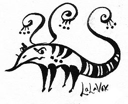 ...This site is long over-due for some additions and various nips and tucks, I admit. But for this time around I'm just dropping in quickly to wish everyone a goulishly delightful Halloween! If you would like to cast your eyes upon my curly-cue greeting card, then please click the thumbnail below...